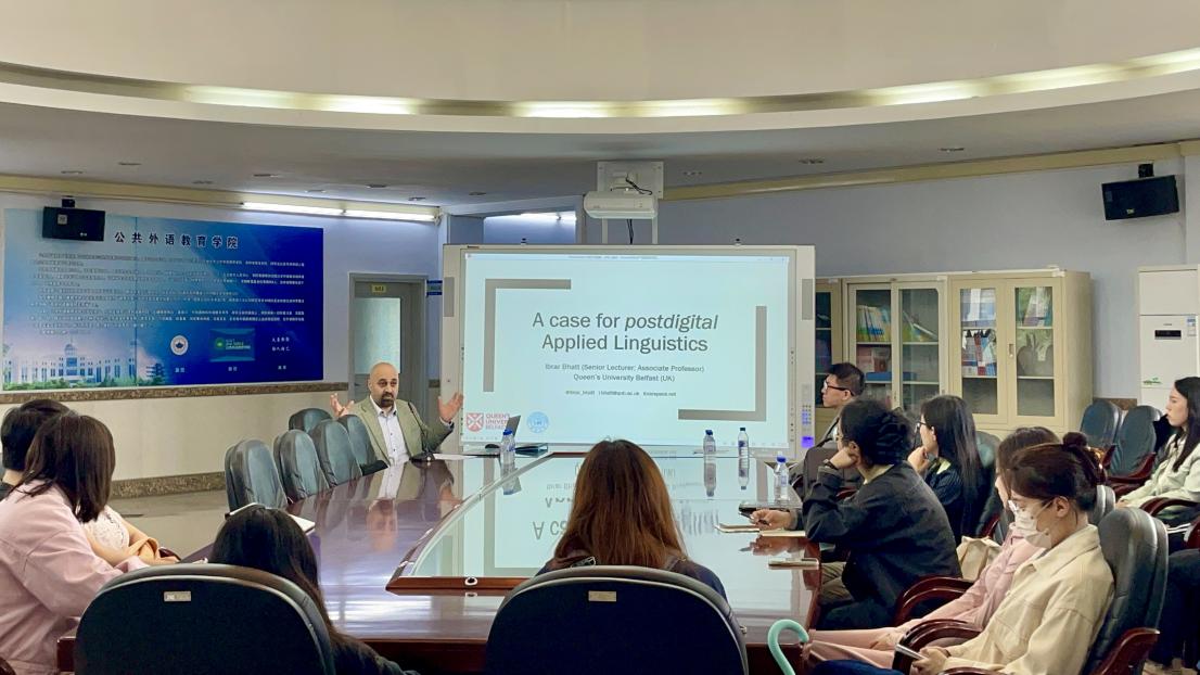 为庆祝吉林大学研究生院建院四十周年,2024年5月23日上午,公共外语教育学院特邀英国贝尔法斯特女王大学社会科学、教育和社会工作学院的Dr. Ibrar Bhatt副教授,在中心校区外语楼六楼会议厅做了题为“A Case for ‘Postdigital’ Applied Lingusitics”的学术报告。Dr. Ibrar Bhatt是高等教育研究学会理事会成员,研究方向涵盖应用语言学、高等教育和数字人文学科,是《Teaching in Higher Education: Critical Perspectives》期刊的执行编辑,并担任《Postdigital Science & Education》期刊的编委会成员。此次报告会由副院长姜峰教授主持,学院硕士、博士研究生参加了本次活动。