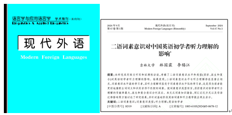 近期,我院2022级硕士研究生林国霖同学在CSSCI外语类权威期刊《现代外语》(2024年第5期)以第一作者身份发表研究论文。