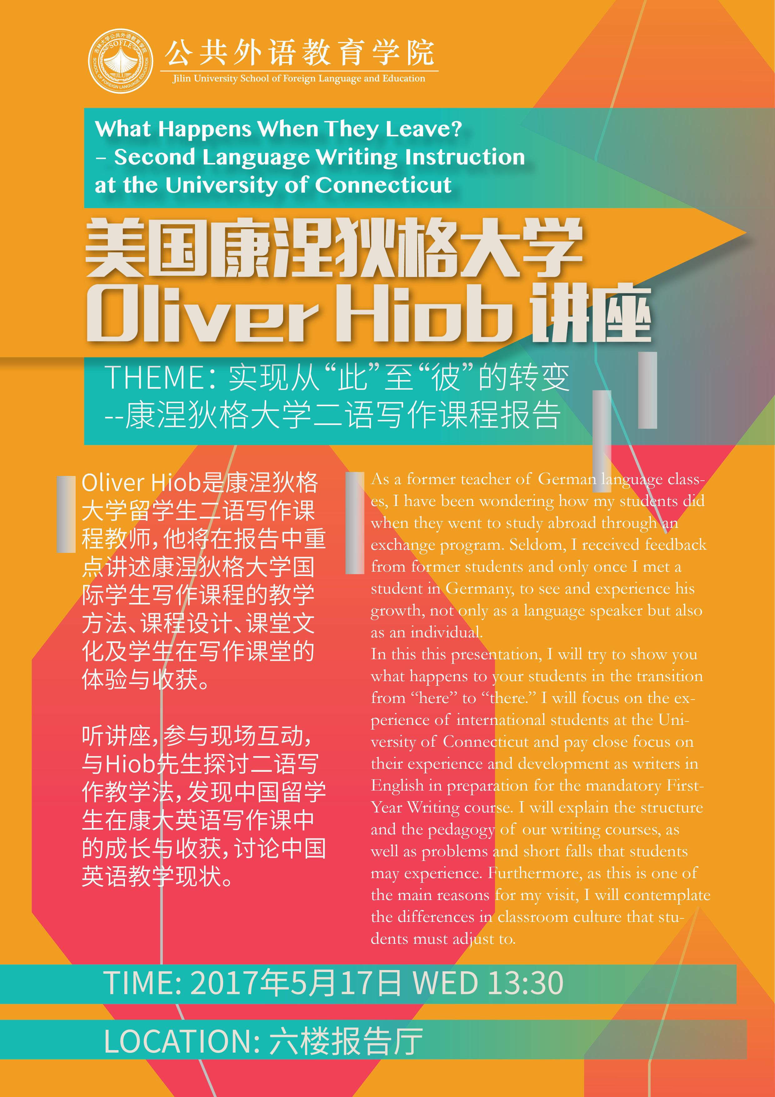 康涅狄格大学是美国一所著名的公立研究型大学。Oliver Hiob是康涅狄格大学留学生二语写作讲师,他将在报告中介绍康涅狄格大学国际学生写作课程的教学方法、课程设计、课堂文化及学生在写作课堂的体验与收获。