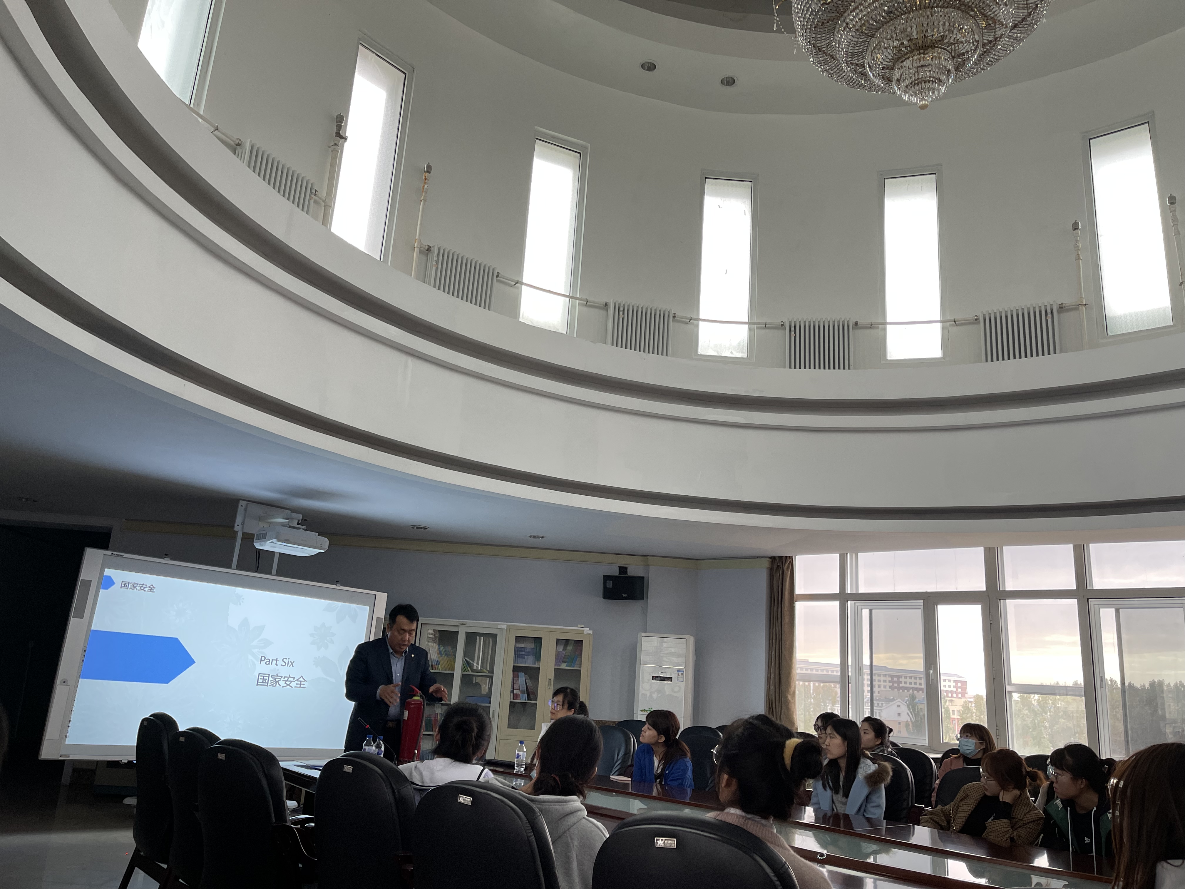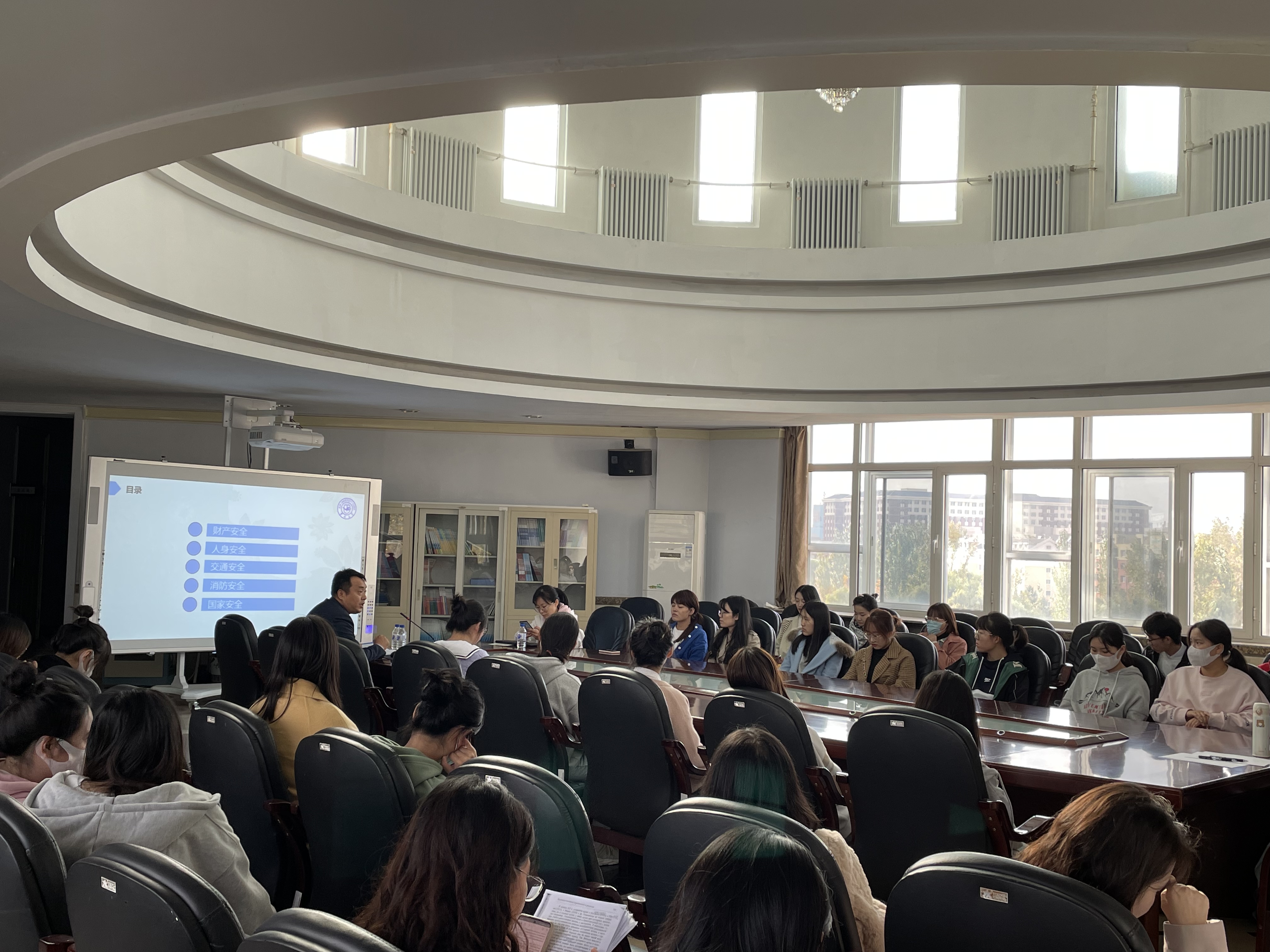 为了提高新生同学们的校园安全意识,公共外语教育学院于2021年10月15日14:00举办了以“提高校园消防安全意识,共建和谐校园”为主题的校园安全知识专题讲座,本次讲座由辅导员曾媛主持,保卫处调研科科长左学成主讲,2021级全体研究生新生参加。