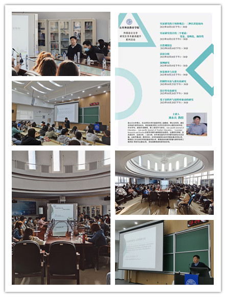 2021年10月,学院邀请东北师范大学外国语学院二级教授、博士研究生导师刘永兵教授分别围绕“实证研究的立场和观点:三种认识论取向”、“实证研究设计的三个要素:变量、范畴化、操作性”、“自然观察法”、“话语分析”、“案例研究”、“问卷调查与访谈”、“控制性实验与准实验研究”、“设计性实验研究”、“基于语料库与语料库驱动的研究”等九大研究理论进行讲授。