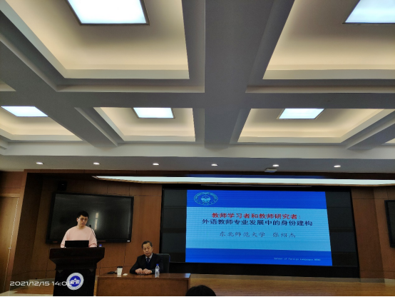为深入贯彻落实习近平总书记对研究生教育工作的重要指示和全国研究生教育工作大会会议精神,学习习近平总书记回信勉励全国高校黄大年式教师团队代表的有关精神深化研究生培养质量,进一步提高研究生导师队伍素质公共外语教育学院协同研究生院20211215邀请东北师范大学外国语学院博士研究生导师张绍杰教授做题为教师学习者和教师研究者:外语教师专业发展中的身份建构的学术报告。学术报告由副院长姜峰教授主持,院长潘海英教授、研究生导师及博士、硕士研究生参会。