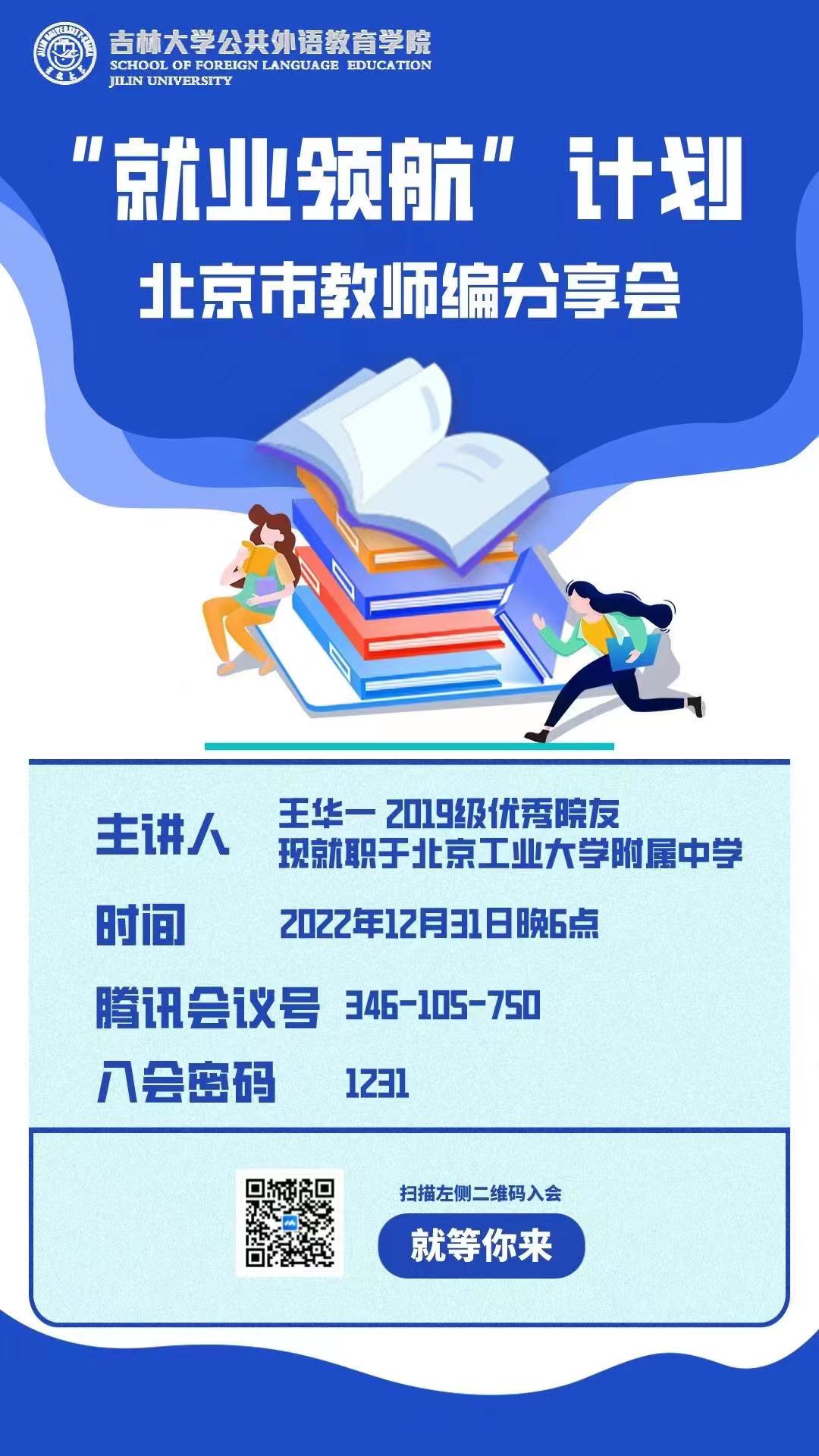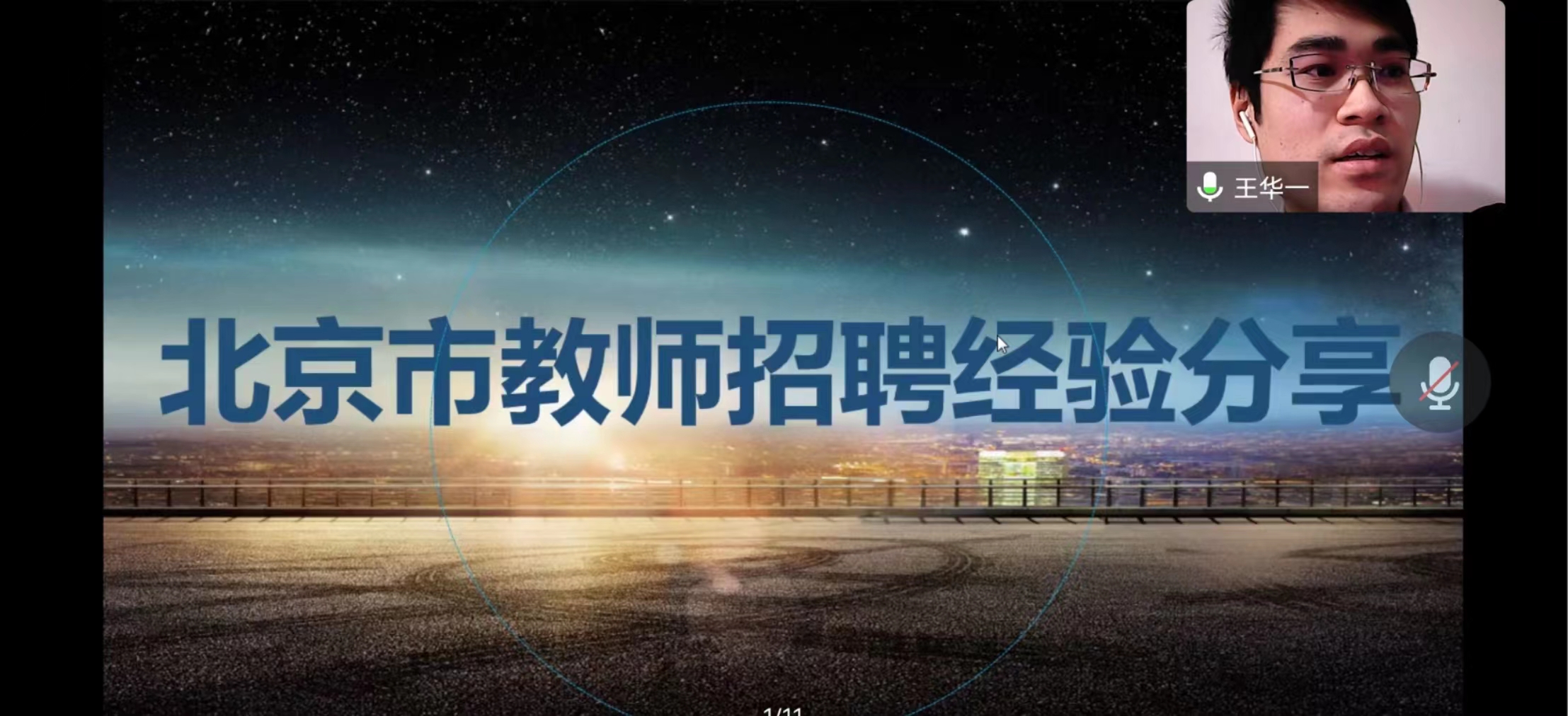 为发挥优秀毕业生模范带头作用,引导学生明确就业目标、制定就业计划规划,2022年12月31日晚6点,公共外语教育学院线上举办了北京市教师编分享会。此次分享会由辅导员曾媛主持,特邀请2019级优秀院友、现就职于北京工业大学附属中学王华一教师主讲,公共外语教育学院百余名研究生参会。