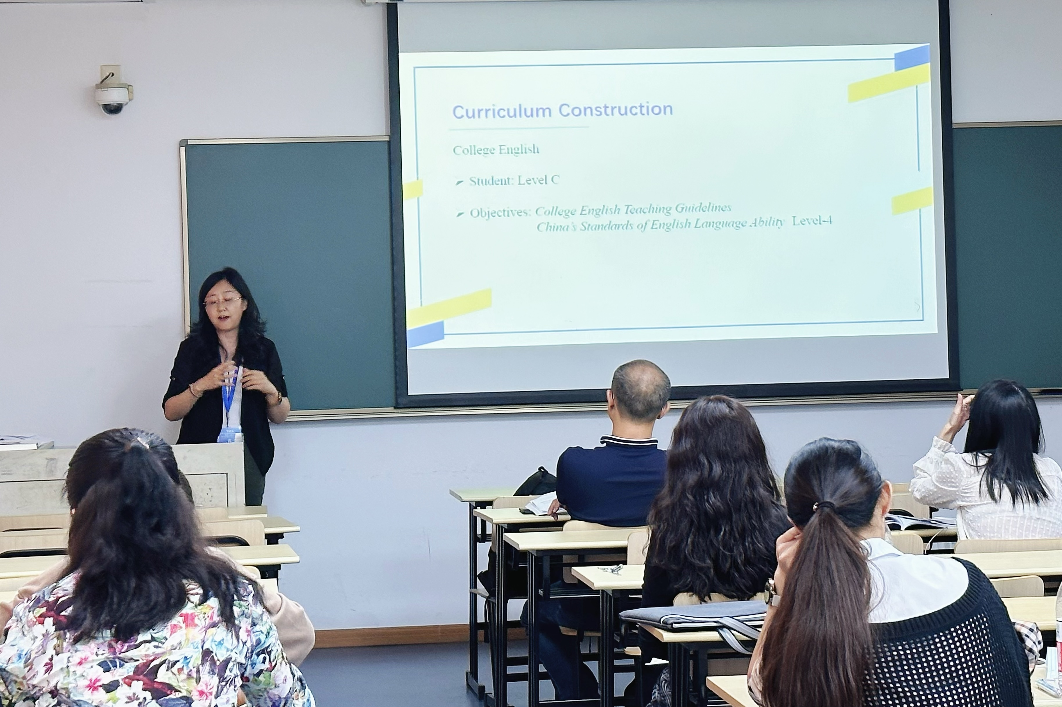 战菊教授主持了北京师范大学宋萑教授的主旨报告 “面向未来的循证教师教育”,并做了精彩点评。初彤和张凤娟两位老师宣读了论文“Identity construction and power dynamics in the co-teaching discourse of native and non-native English-speaking teachers”,分享了中外籍教师在合作教学过程中如何动态建构多元身份,推动专业发展的研究成果。许春燕和战菊两位老师以“课程建设——促进大学外语教师发展的有效途径”为题,介绍了我校大学英语课程建设团队的教学实践,特别分享了大学英语混合式课程建设在促进教师发展、提升教师教学能力和技术运用能力等方面的成效。
