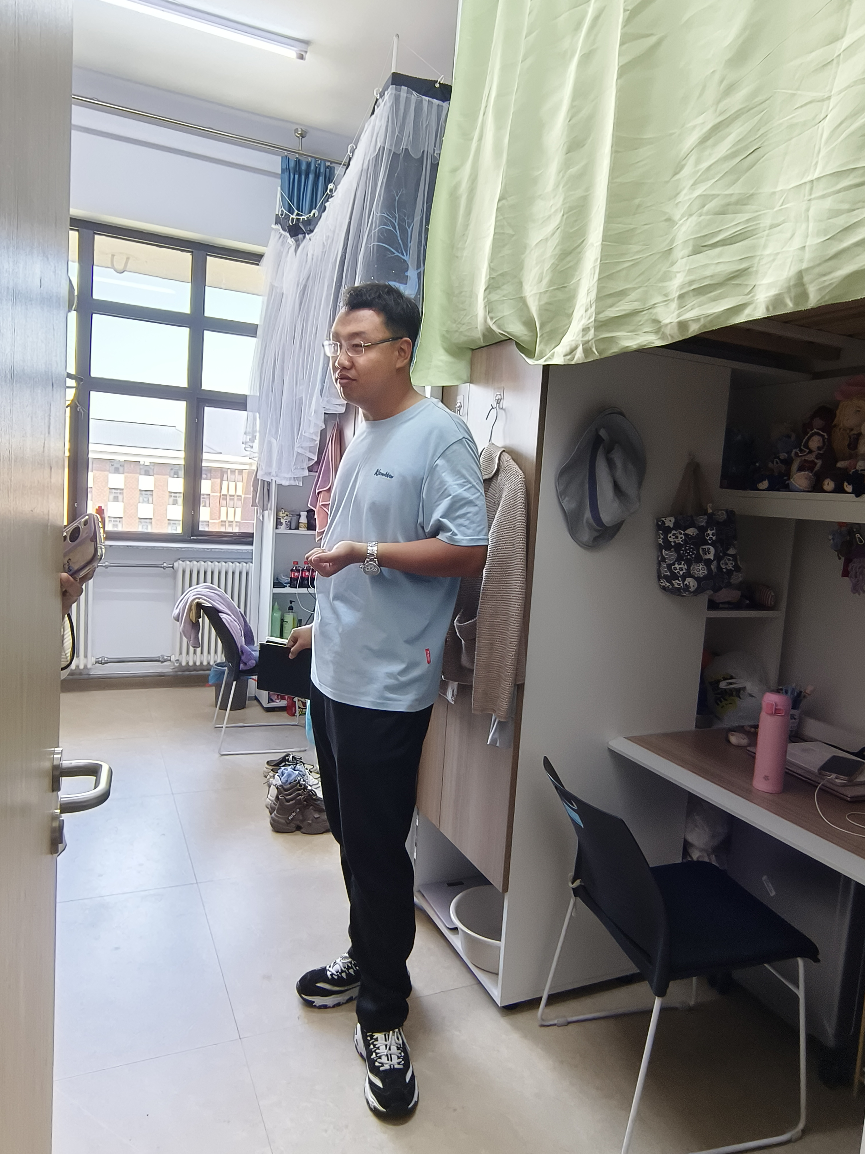 为进一步加强研究生寝室的卫生管理和安全保障,打造温馨、和谐、安全的居住环境,公共外语教育学院于2024年6月3日上午开展寝室卫生安全专项检查工作。我院研究生辅导员林明帅带领学生干部对研究生寝室进行检查。
