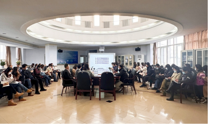 为积极贯彻落实新一轮教学评估的相关要求,扎实做好新一轮本科教育教学审核评估工作,公共外语教育学院于2023年11月1日下午召开本科教育教学审核评估自评工作布置会。学院领导班子全体成员、教学委员会委员、督学、各教研室主任、副主任、各支部书记、各科室科长及教学办全体成员参与了此次会议,会议由院长潘海英教授主持。