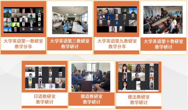 培训交流,以定期研讨提升教师专业素养。学院定期举办“教师虚拟学习共同体系列工作坊”,与国内高校共建,促进教师间的学习交流。学院每学期组织外语教师教育教学素养提升系列活动,为教师教学交流搭建平台。